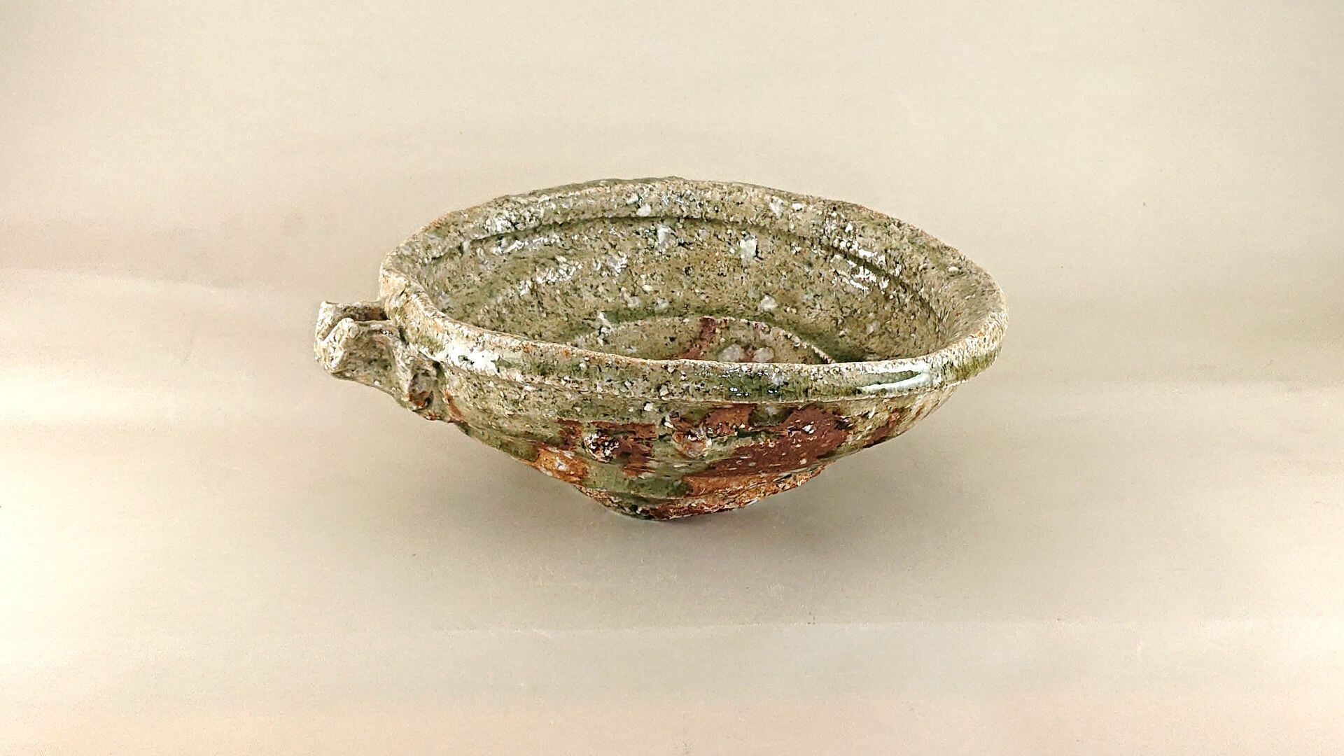 作品の特徴: 片口のデザインは、酒器としてもおもしろく日常使いにも最適です。骨太な作りながらも、どこか親しみやすさを感じさせる形状は、料理を引き立てるのに一役買います。和食はもちろん、さまざまな料理に調和し、食卓のアクセントとして活躍します。